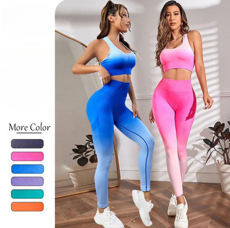 V&J Women 2 pcs short sleeve Gradient Gym Fitness Sports Workout Wear Yoga S...