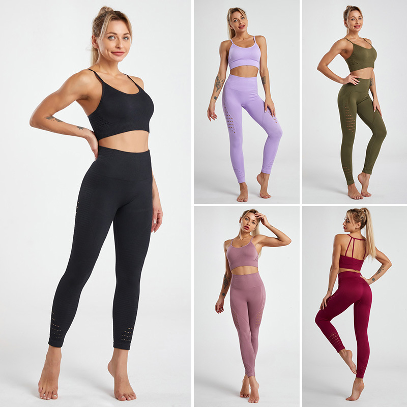 V&J Everyday Seamless Yoga Outfits Sets Tight Fit Leggings and Sport Bra...