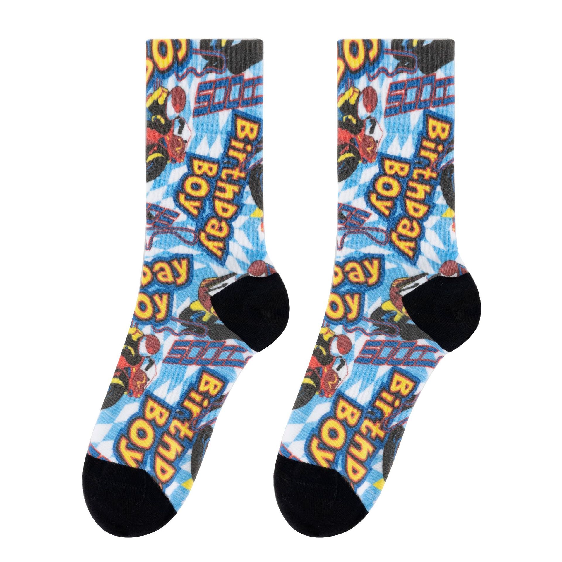 Stand out with these trendy, vibrant and colorful vivid print socks; Fan favorite movie, cartoon, pop culture, food, character themed socks for golf, work, gym, skateboarding, bike riding or everyday wear