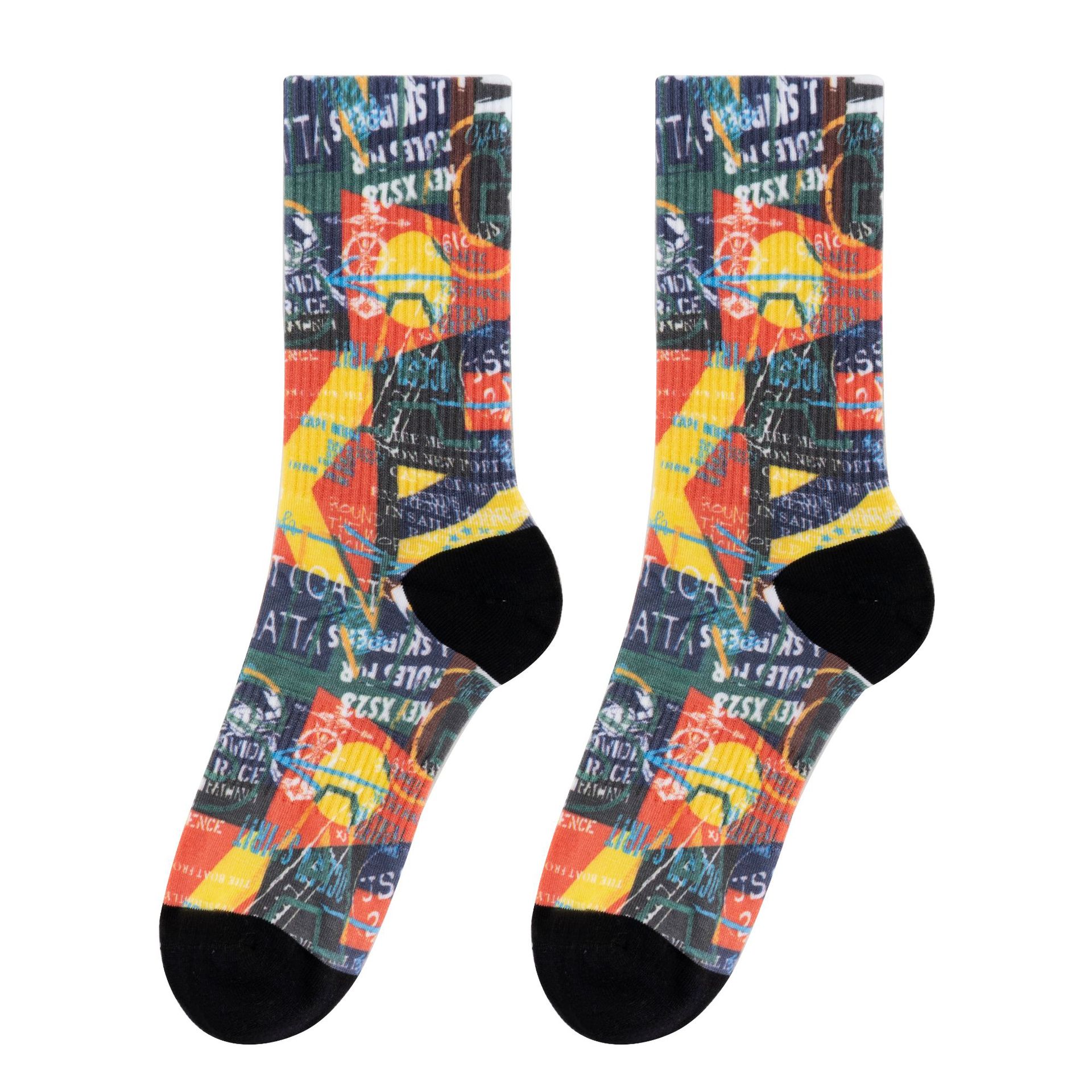 All socks are designed with an all over graphic print that won't crack or peel. Medium thickness make your feet comfortable and suitable for four seasons. The printing socks will stretch a little when you put them on. Featuring an elastic cuff to create a tight, non-slip fit.